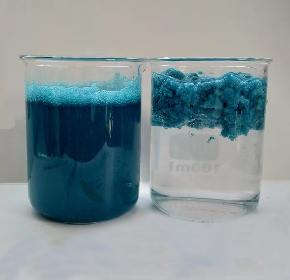 油漆在循環(huán)水中帶有一定量負電性,與帶有高正電荷全有機高分子化合物接觸,電荷轉移,對漆滴產生很強的吸引力,當漆滴被“捕捉”吸附后它利用極性不同的親和性講漆滴完全包裹,并穿透漆滴,破壞涂料的功能基團,使其完全消除粘性,形成不穩(wěn)定之細小顆粒,并帶動被包裹破粘的漆滴上浮,同時將水中油漆重金屬去除,并控制循環(huán)水生物活性,使循環(huán)不易產生惡臭,同時可降低COD含量及廢水處理成本。高等分子量的環(huán)保微生物絮凝劑再通過在分子之間的“橋架”作用,聚集被破壞的漆霧和雜質成較大的基團,使其堅固和粘合,使聚集基團在系統(tǒng)中上浮速度加快,使其形成較大顆粒而上浮,與水分離,并結成漆渣浮于水面,凈化水質。同時藥劑內的防腐緩蝕劑成份對設備金屬表面進行防腐處理從而保護設備不被腐蝕損傷。